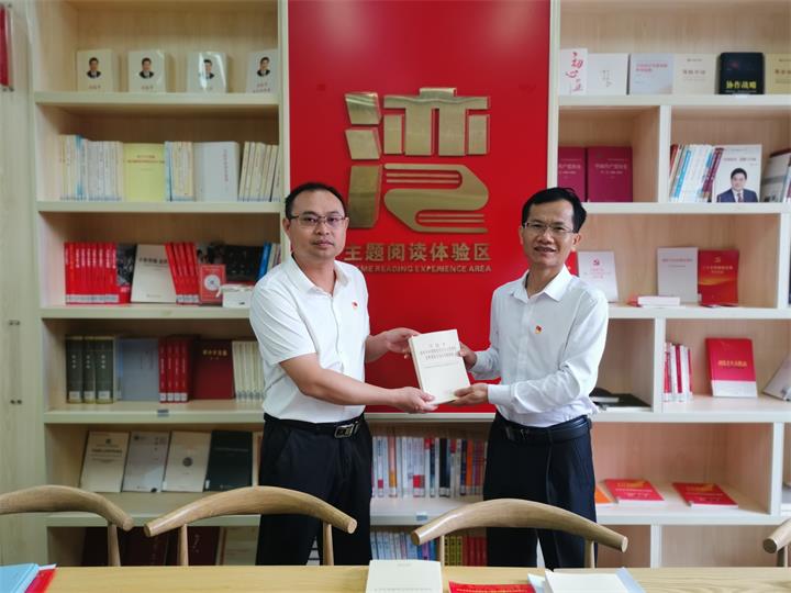 隨后,全體干部職工在“紅灣”閱讀體驗區(qū)集體靜心閱讀經(jīng)典好書、好文,公司壯、瑤、漢等民族干部職工代表分享閱讀感想、體會。李羅清還為黨員干部贈送書籍。